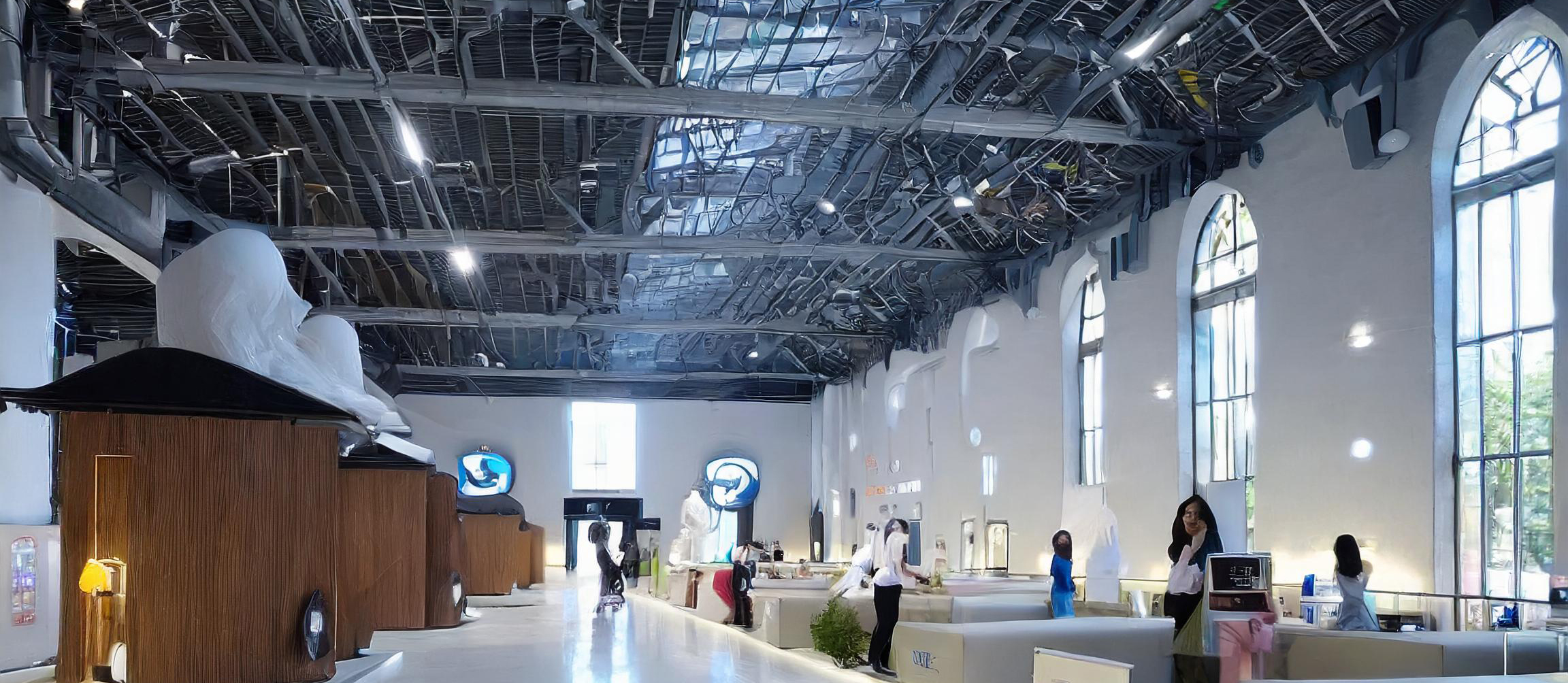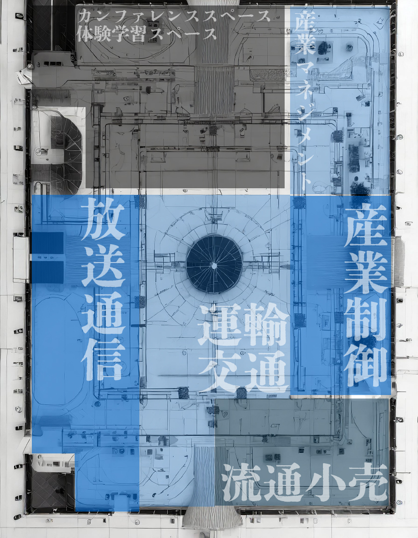 各産業を連結し経済活動や社会機能を支える技術を展示紹介しています。